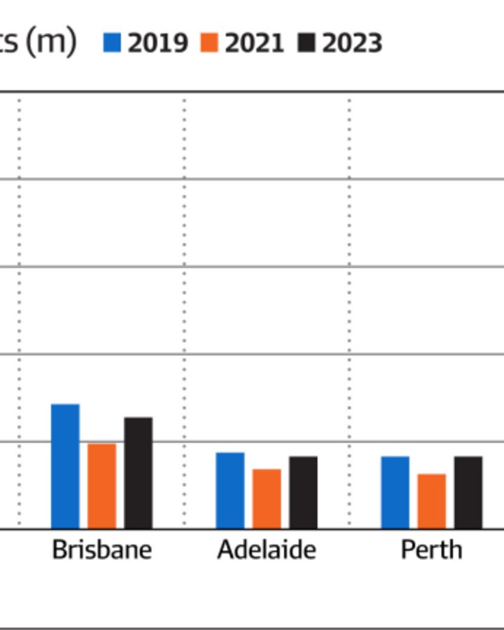 The data, from commercial property research agency PAR Group, also showed CBDs daily visitations were down more than 15 per cent from pre-pandemic levels despite a pickup in population numbers. The decline in visitations equated to about 418,513 fewer people visiting CBDs every day, which meant the latest figures were much closer to 2021 lockdown levels rather than 2019 pre-pandemic levels.