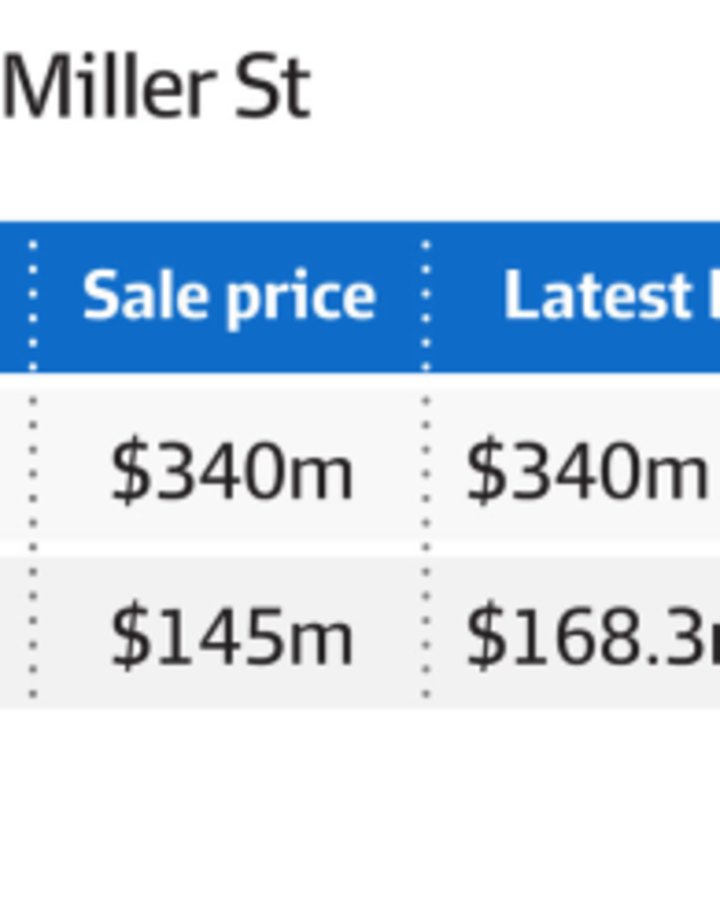Meanwhile, Mirvac is also finalising the sale of North Sydney’s A-grade 40 Miller Street for about $145 million from US global investment manager Barings – a near-14 per cent discount to its current book value of $168.3 million and a 24.9 per cent discount from its peak book value of $193 million in December 2022.