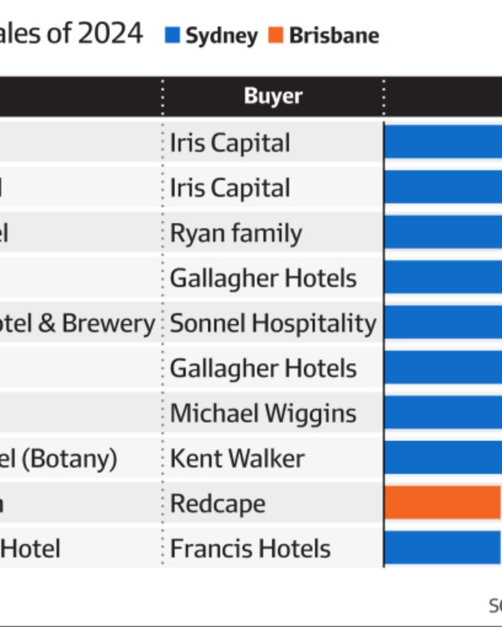 Sydney accounted for nine of the ten biggest pub sales of 2024, including Redcape Hotel Group offloading the El Cortez Hotel for about $100 million and the Cabramatta Hotel for $90 million just before Christmas. Both pubs were acquired by Rich Lister Sam Arnaout’s Iris Capital.